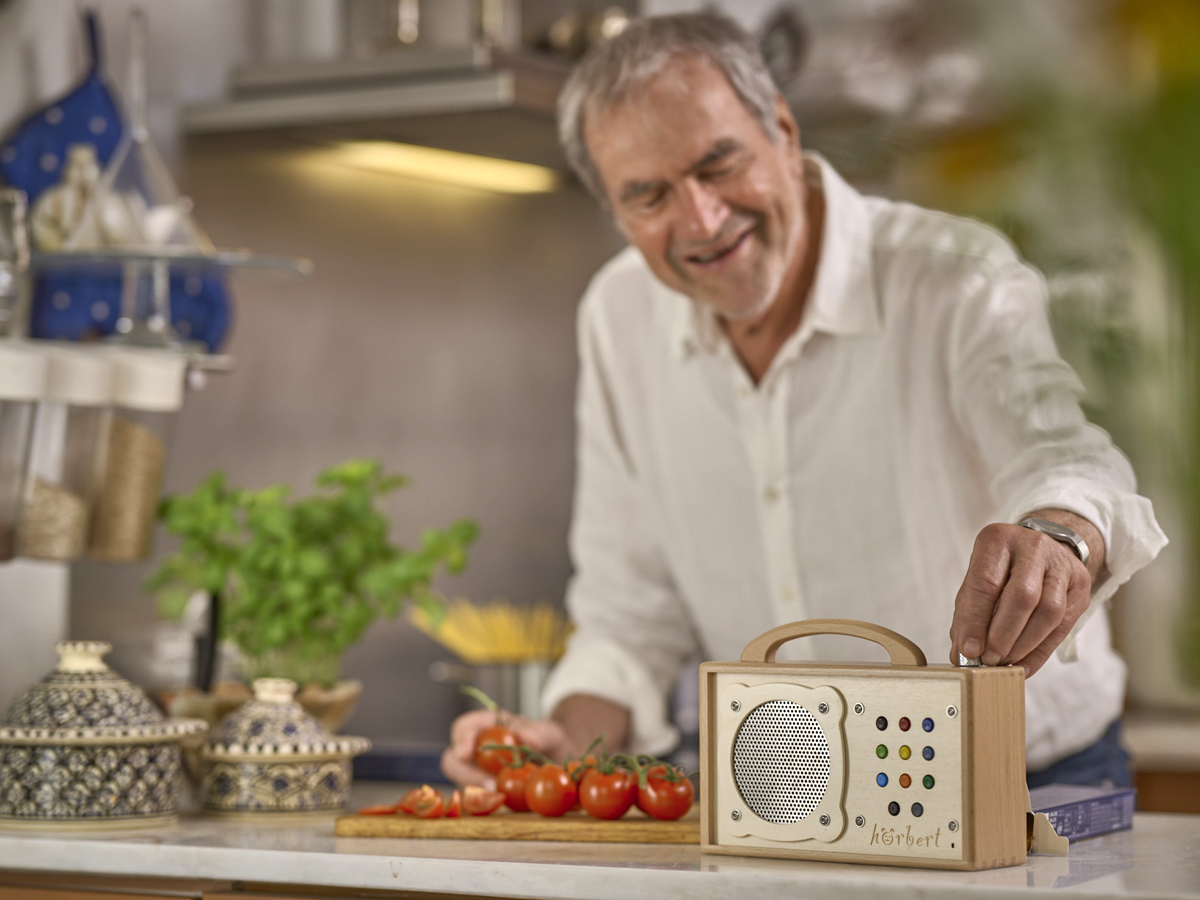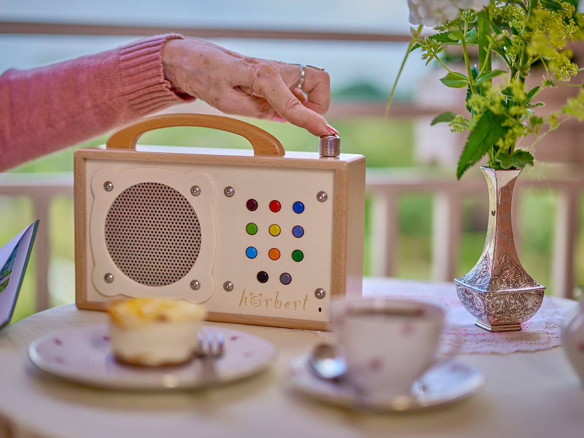 - You navigate through the playlists with a simple button press; hörbert remembers exactly where it was when switched off and continues playing seamlessly after being switched back on.