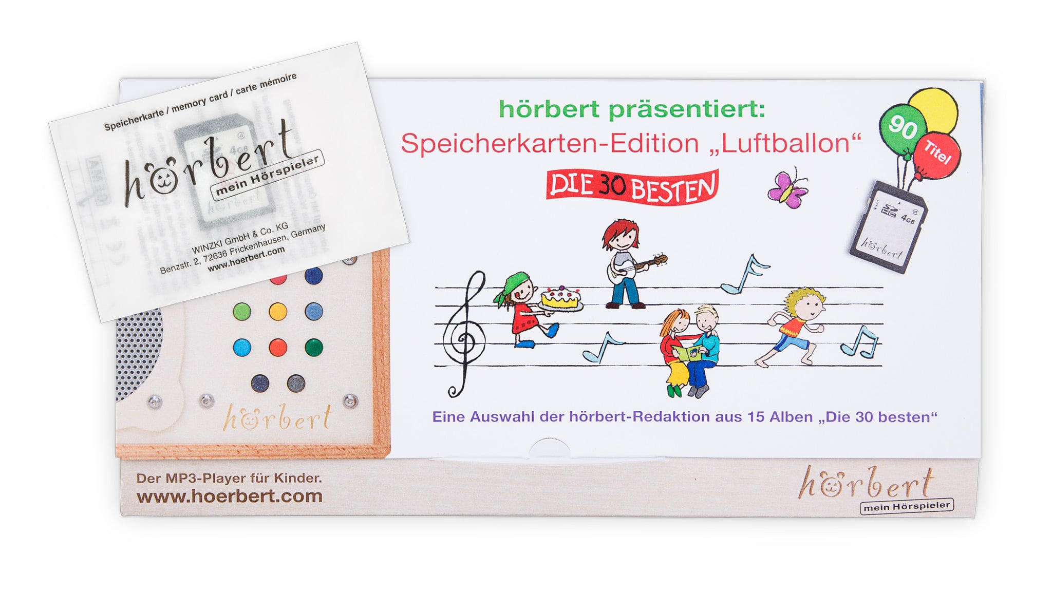 The 30 Best – albums are among the most successful children’s song CDs in Germany. The hörbert editorial team has packed 90 favorite titles from each of the 15 albums of the series The 30 Best into the “Luftballon” memory card edition.