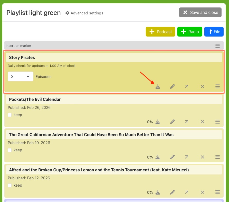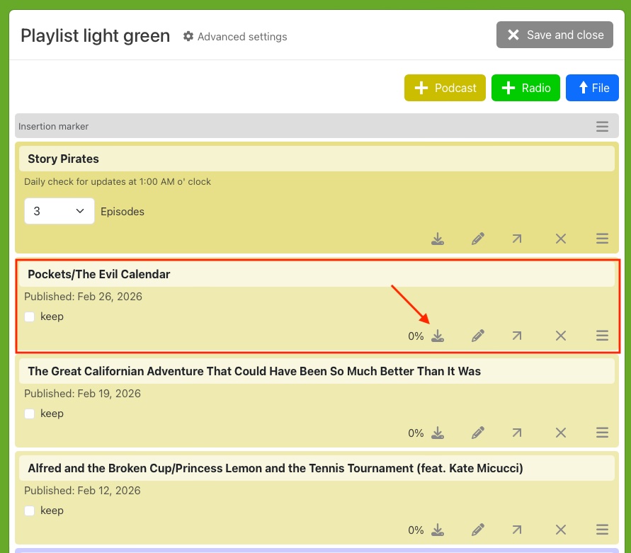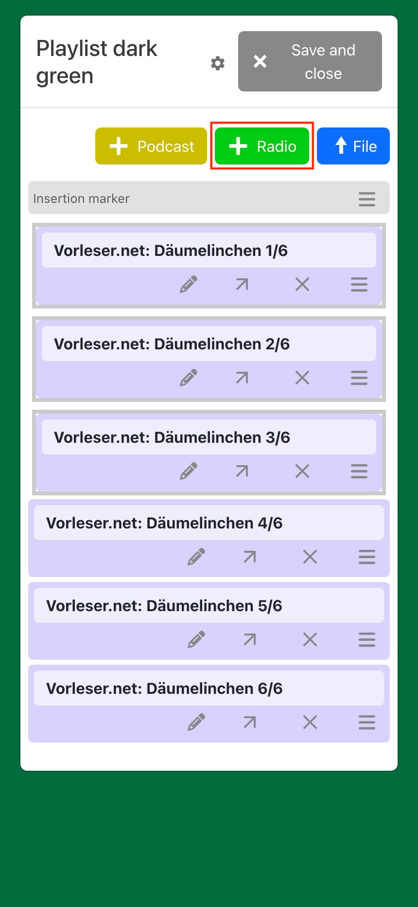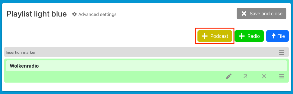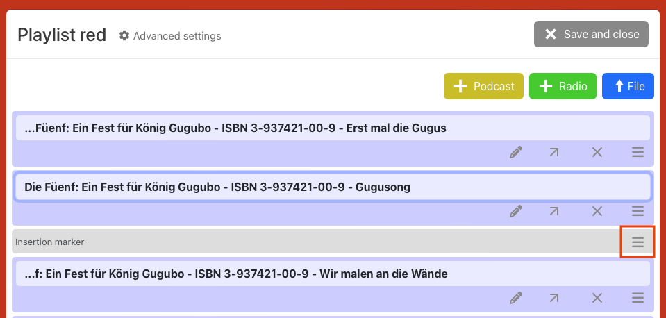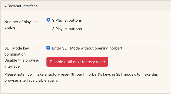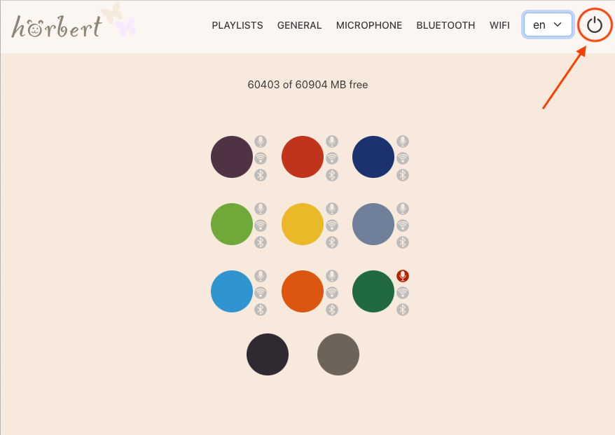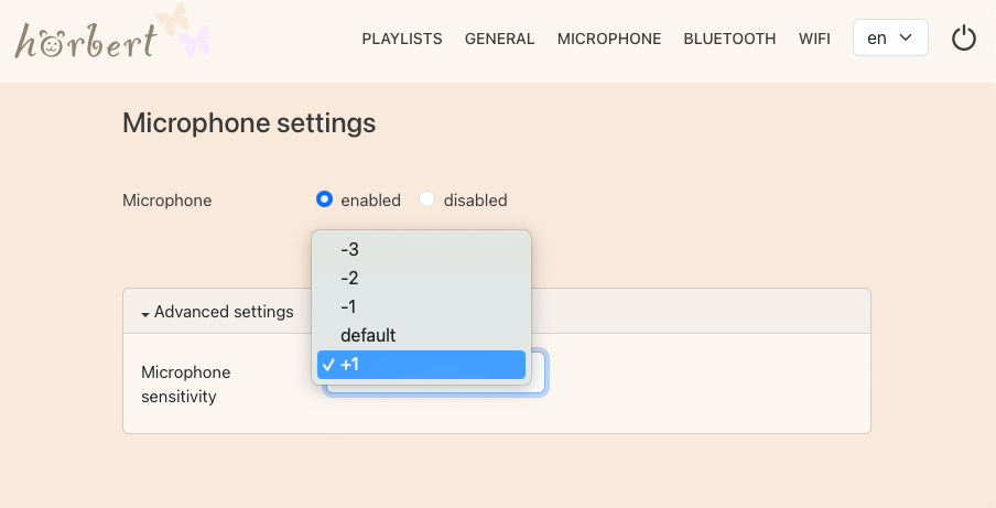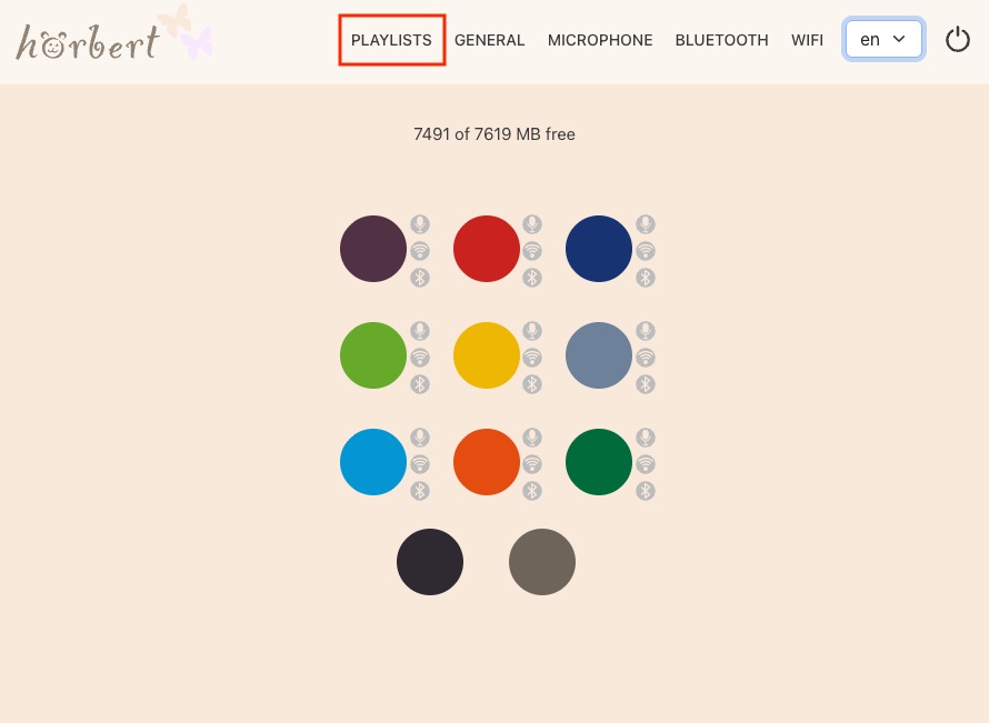 By default, hörbert plays music and stories from an SD card. Each button can store multiple tracks, radio plays, or audiobooks; each press of a button jumps to the next track in the respective playlist.