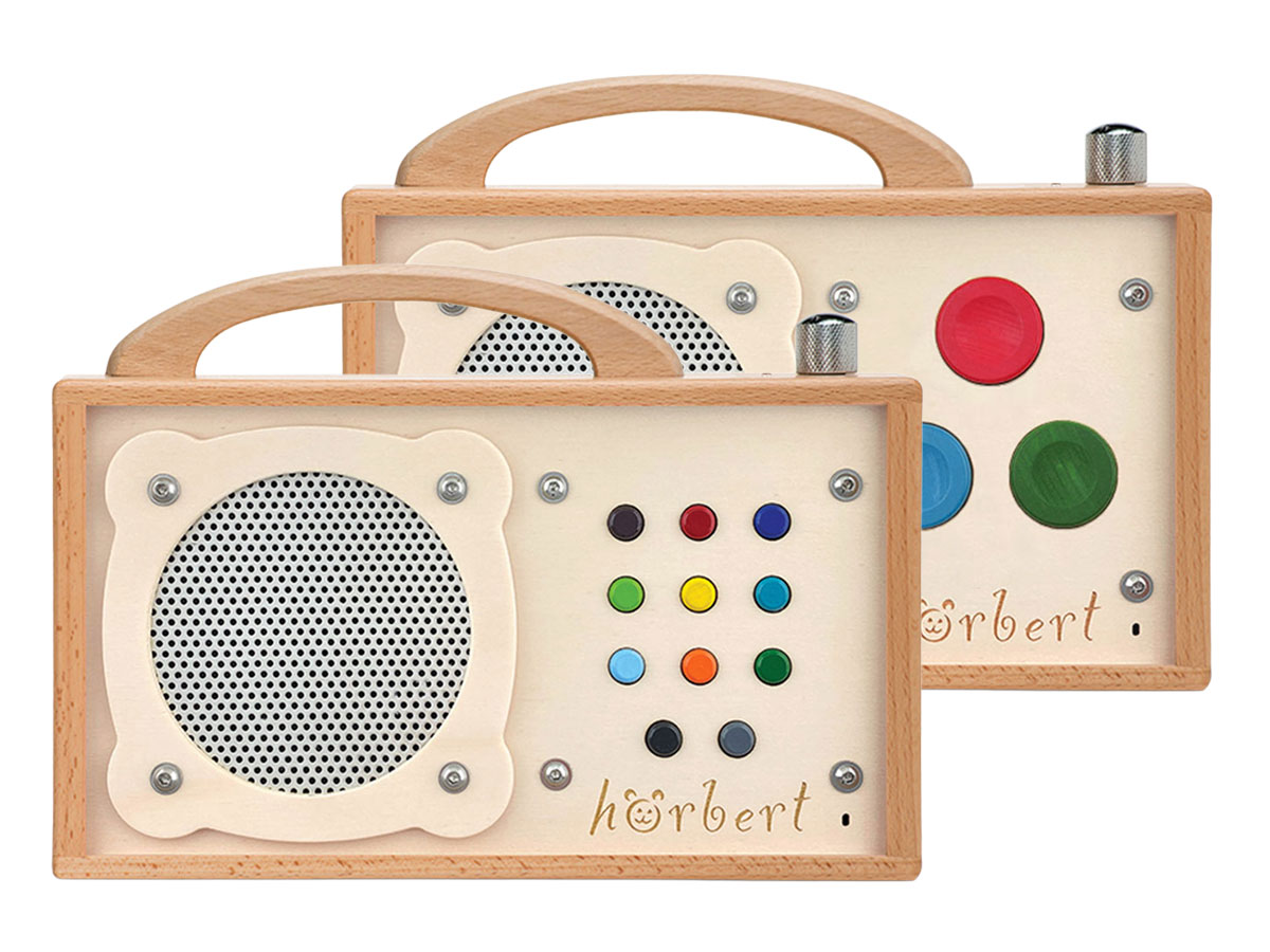 - 1 × hörbert – wooden music box with USB port and rechargeable battery function